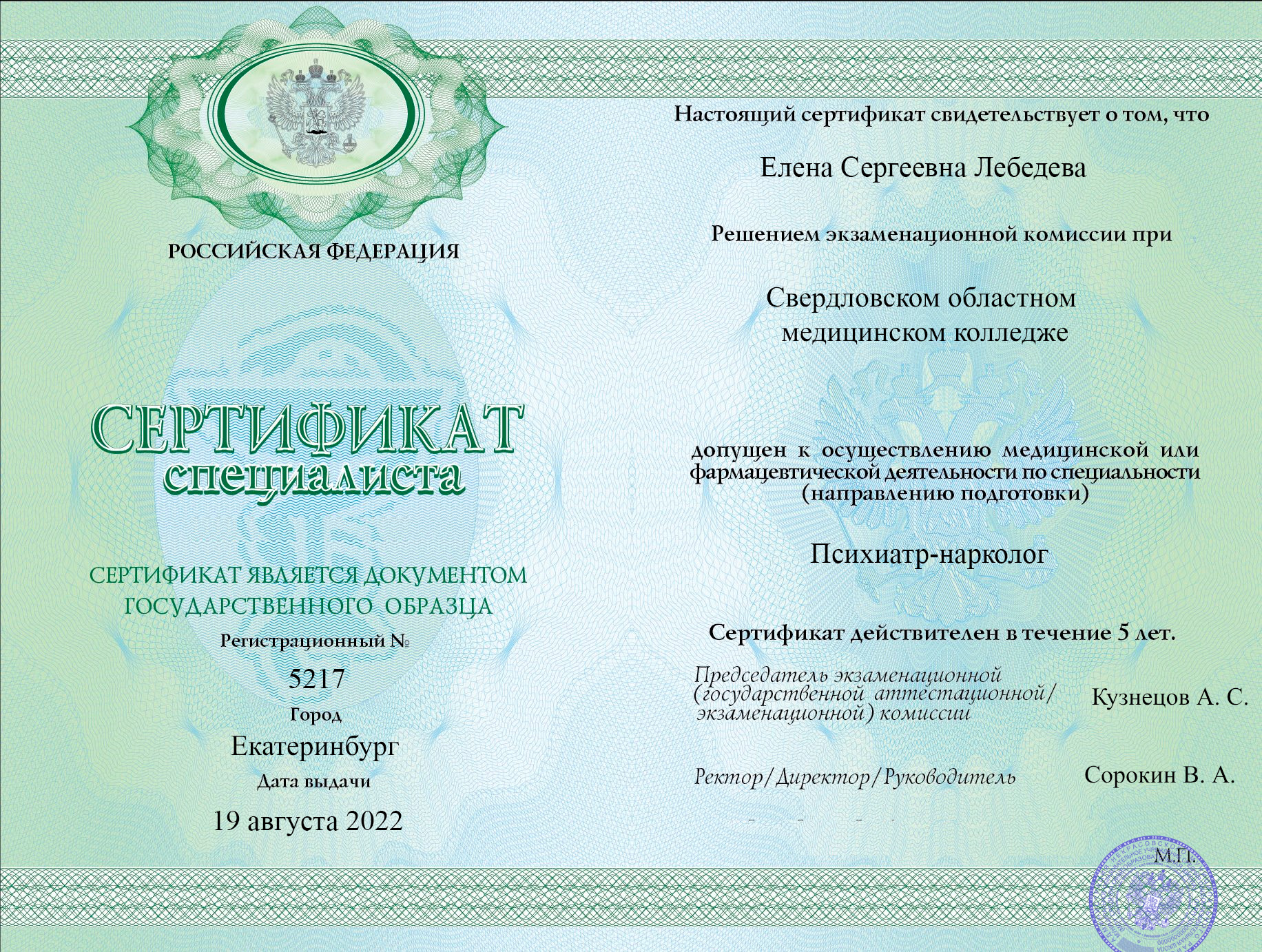 Елена Сергеевна Лебедева врач нарколог клиники доктора Стукаловой в Нытве
